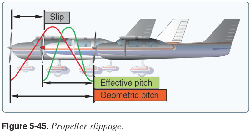 GEOMETRIC PITCH (기하학적 PITCH) 는 이론적으로는 한바퀴에 손실이 발생 하지 않는다. EFFECTIVE PITCH 는 PROPELLER 가 실제로 한바퀴를 돌면서 앞으로 나아갈때를 나타낸다. 이것은 GEOMETRIC PITCH - PROPELLER SLIPPAGE (손실) 과 같다.