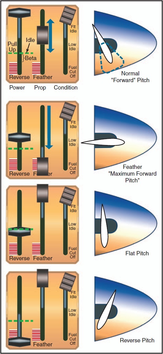 • reverse thrust 는 Blade 가 Reverse (or negative) pitch로 변경 되어, propeller의 Thrust 가 역방향으로 작용 한다.