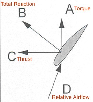 Blade Section 프로펠러는 회전 하면서 나아갈 때 나선형의 형태로 회전 하는데 Rotational Velocity 와 Forward Velocity 를 합친 것으로 Helix 라고 한다. Blade Section 에서 Relative Airflow 는 프로펠러날을 가르는 공기와 정확히 반대 방향으로 작용한다. Blade Section 의 Chord line 과 Relative airflow 의 각도를 Angle of Attack 이라고 한다.